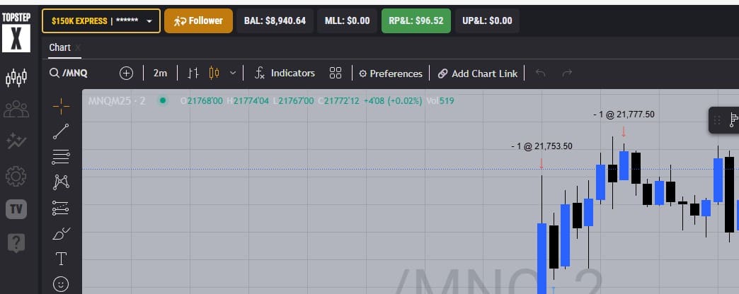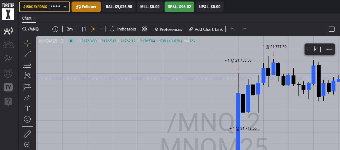 When you trade price action, you don’t need clutter. I use one line on my Tradingview chart. That’s it. No indicators. No noise. Just time, price, and risk management. I wait for the market to break structure on a 2-minute chart, and if volatility’s present—like it was today—I’m in.